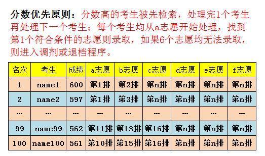 分數(shù)優(yōu)先是橫向一行一行地檢索處理,每個考生的a專業(yè)錄不上會繼續(xù)檢索b、c、d……專業(yè),處理完一個考生再處理下一個考生。