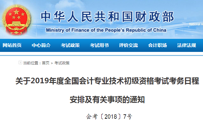 (一)2018年10月22日前,各省級(jí)考試管理機(jī)構(gòu)公布本地區(qū)2019年度初級(jí)資格考試科目、考試時(shí)間、報(bào)名日期、報(bào)名方法等相關(guān)事項(xiàng)。