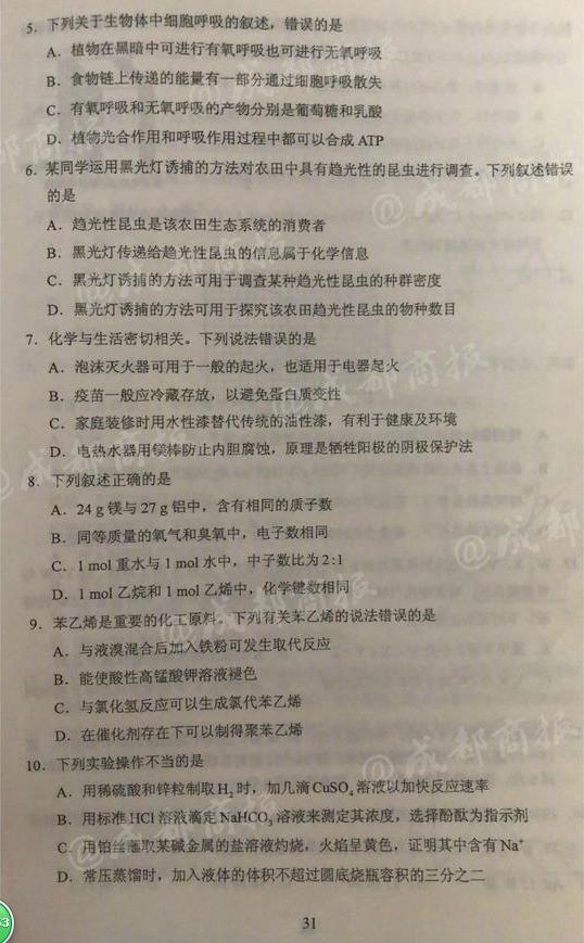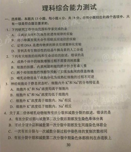 “數(shù)風(fēng)流人物,還看今朝”。寒窗苦讀十?dāng)?shù)年的學(xué)子們,高考集結(jié)號(hào)已吹響。希望你們能奮力拼搏,勇往前行,讓理想在六月里張開翅膀,飛向期盼的彼岸;讓生命的禮花在六月里絢麗綻放,發(fā)出耀眼的光芒!2018年全國(guó)卷III地區(qū)高考理綜考試已結(jié)束,高考頻道在考后從網(wǎng)絡(luò)搜羅整理了2018年全國(guó)卷III高考理綜真題及答案,供各位考生學(xué)習(xí)參考。