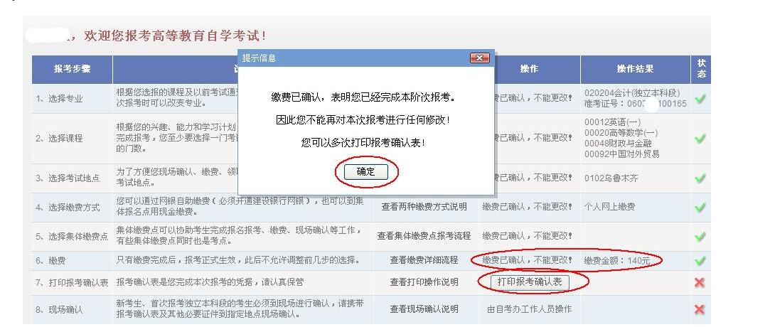 14.支付成功后,點(diǎn)擊返回支付網(wǎng)站,系統(tǒng)會(huì)返回到主頁(yè)面,您可以打印報(bào)考確認(rèn)單,繳費(fèi)成功后,報(bào)考成功,信息不能更改!報(bào)考已完成。