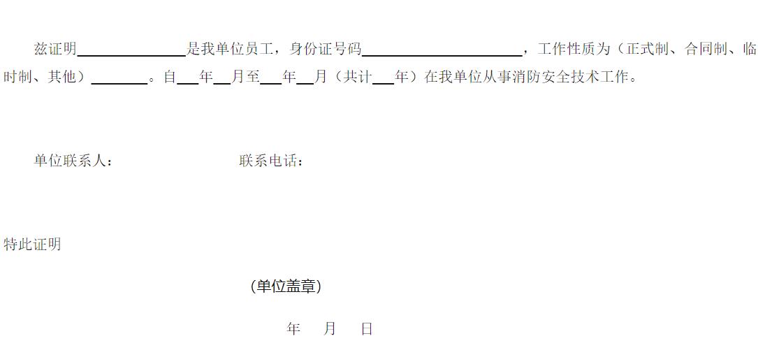 3.報(bào)考人員從事消防安全技術(shù)工作年限證明原件(附件4)及工作單位營業(yè)執(zhí)照(或組織機(jī)構(gòu)代碼證)復(fù)印件(1份),與工作單位簽訂的勞動(dòng)合同或聘用文件復(fù)印件(1份);