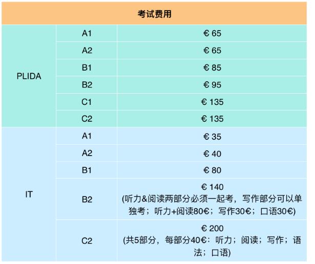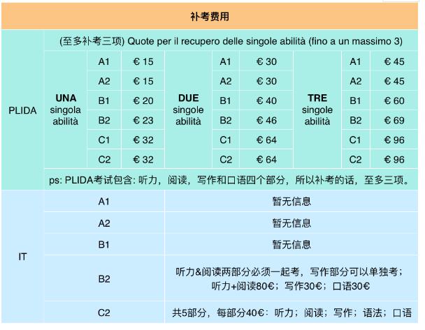 2018年P(guān)LIDA和羅馬三大IT意大利語等級考試補(bǔ)考費(fèi)用如下: