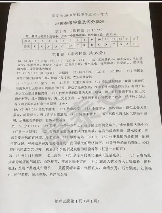 2018年山東泰安中考地理考試已結(jié)束,中考頻道從網(wǎng)絡(luò)上搜集整理了“2018年山東泰安中考地理試卷及答案”,供考生們參考學(xué)習(xí),小編預(yù)祝大家取得優(yōu)異的成績!