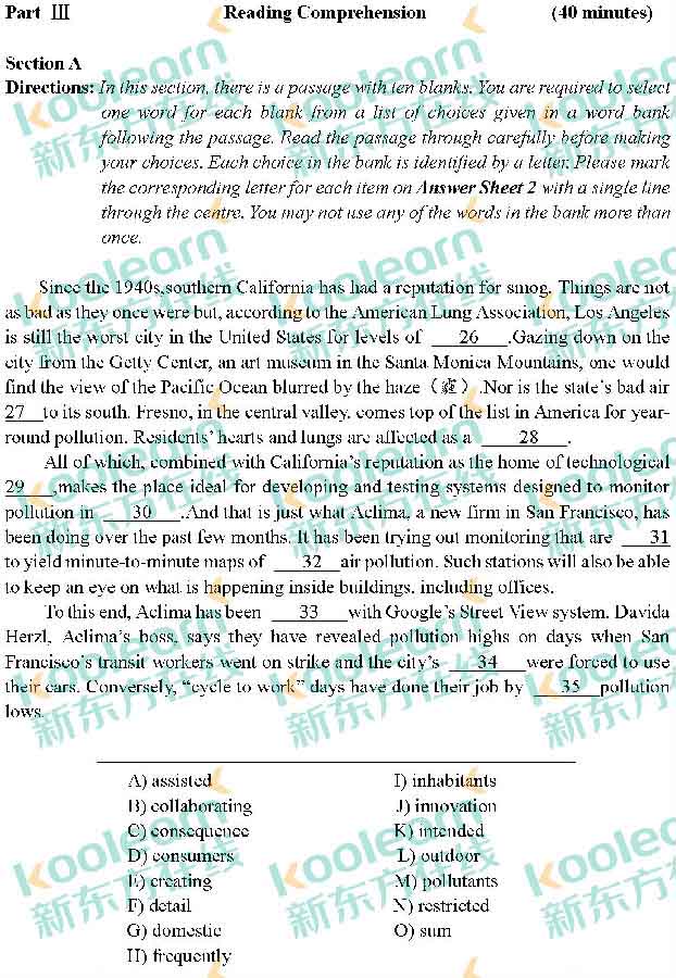 2018年6月英語(yǔ)四級(jí)考試已結(jié)束,四六級(jí)頻道在考后特別搜集整理了2018年6月英語(yǔ)四級(jí)選詞填空真題【新東方在線版】,僅供大家參考,祝大家順利通過(guò)四級(jí)考試!