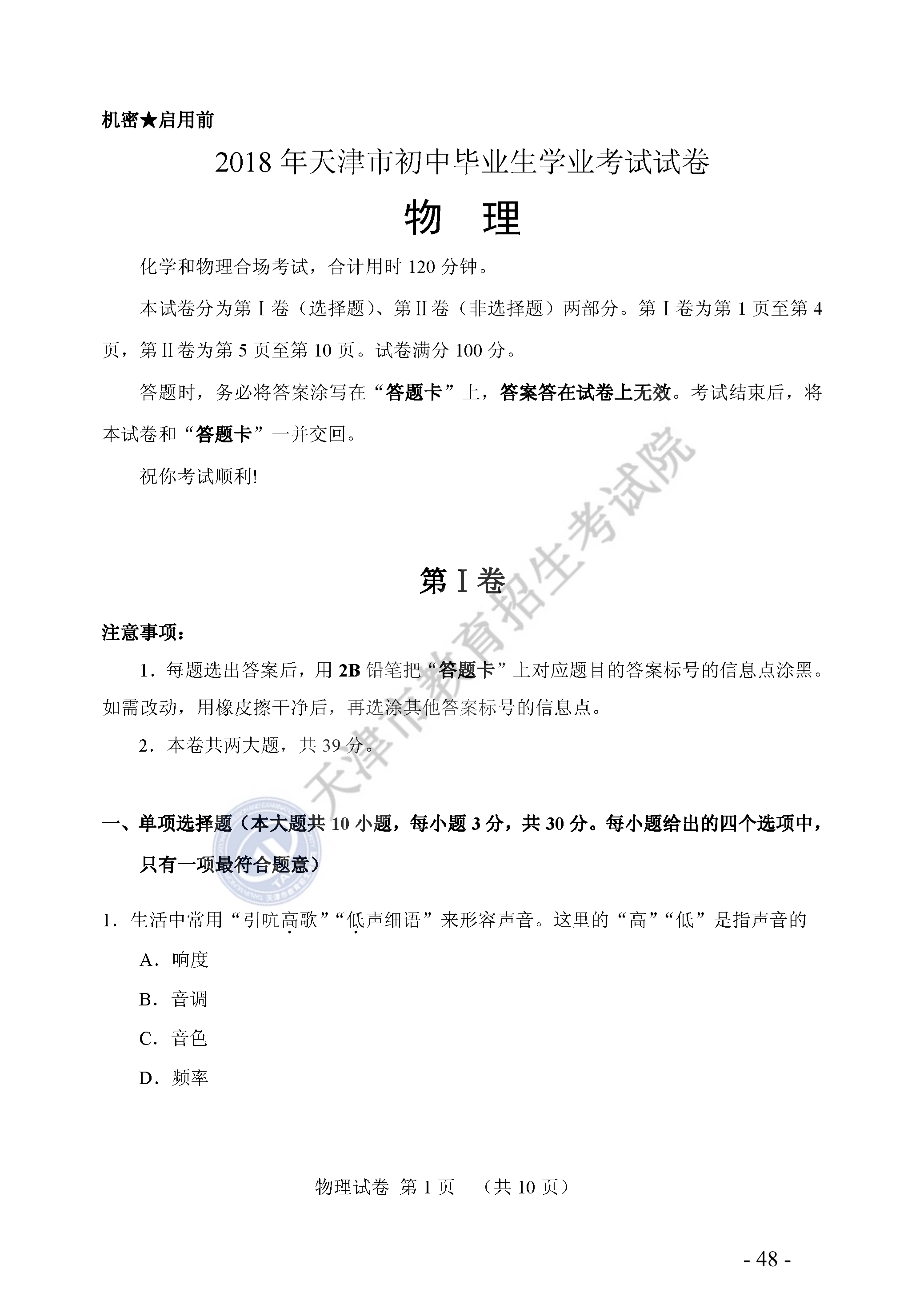 2018年天津北辰中考物理考試已結(jié)束,渝中中考頻道從網(wǎng)絡(luò)上搜集整理了“2018天津北辰中考物理試卷及答案”,供考生們參考學(xué)習(xí),小編預(yù)祝大家取得優(yōu)異的成績(jī)!