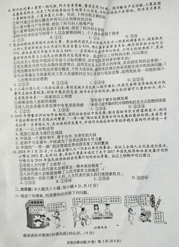 2018年重慶萬(wàn)州中考政治考試已結(jié)束,中考頻道從網(wǎng)絡(luò)上搜集整理了“2018年重慶萬(wàn)州中考政治試題B卷”,供考生們參考學(xué)習(xí),小編預(yù)祝大家取得優(yōu)異的成績(jī)!