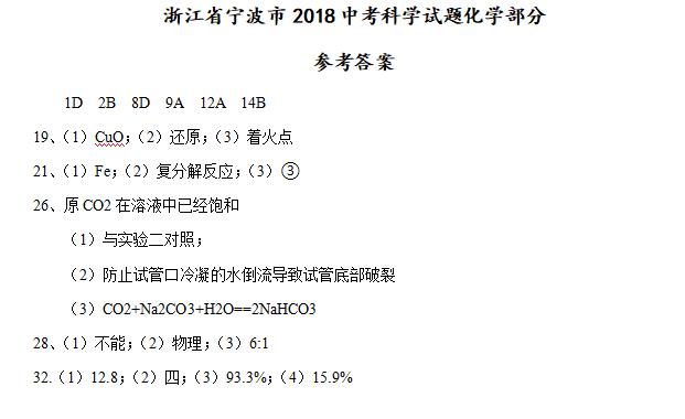 2018年浙江寧波中考化學(xué)考試已結(jié)束,中考頻道從網(wǎng)絡(luò)上搜集整理了“2018年浙江寧波中考化學(xué)試卷及答案”,供考生們參考學(xué)習(xí),小編預(yù)祝大家取得優(yōu)異的成績!