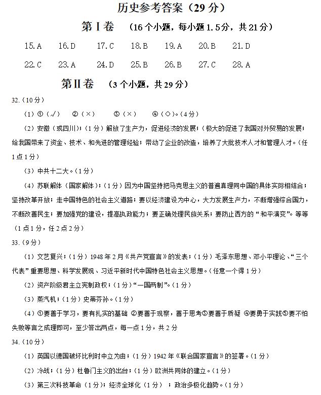 2018年四川樂山中考?xì)v史考試已結(jié)束,中考頻道從網(wǎng)絡(luò)上搜集整理了“2018年四川樂山中考?xì)v史答案”,供考生們參考學(xué)習(xí),小編預(yù)祝大家取得優(yōu)異的成績!