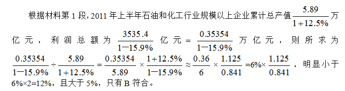解析:2008年,第一產(chǎn)業(yè)內(nèi)部畜牧業(yè)增加值是9640÷(1+5.5%) <9640÷(1+5%)=9640×blob.png<460×20=9200億元,符合條件的只有A。