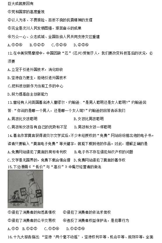 2018年湖南衡陽中考政治考試已結(jié)束,中考頻道從網(wǎng)絡(luò)上搜集整理了“2018年湖南衡陽中考政治試卷及答案”,供考生們參考學(xué)習(xí),小編預(yù)祝大家取得優(yōu)異的成績!