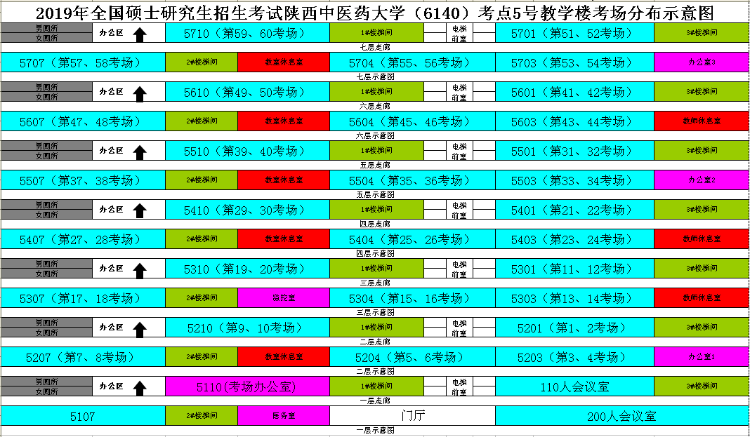 2018年全國(guó)碩士研究生招生考試陜西中醫(yī)藥大學(xué)(6140)考點(diǎn)5號(hào)教學(xué)樓考場(chǎng)分布示意圖