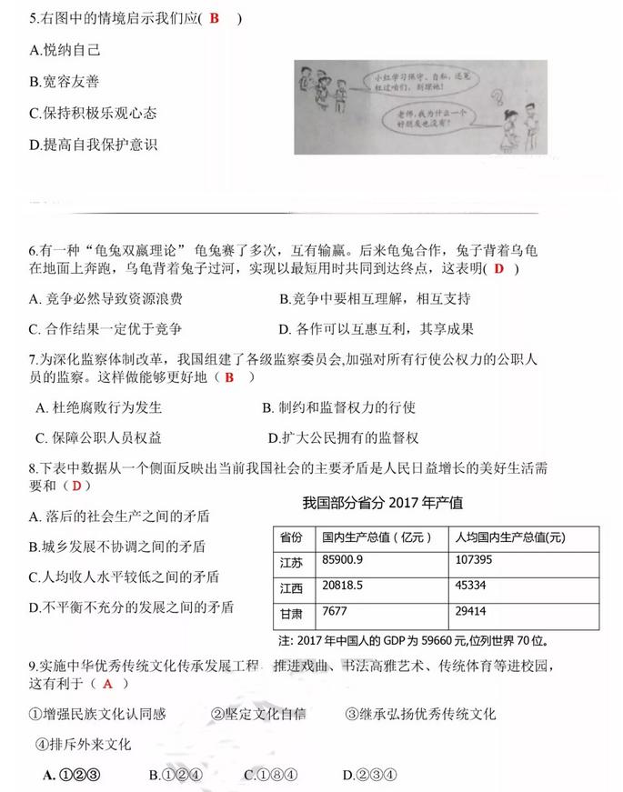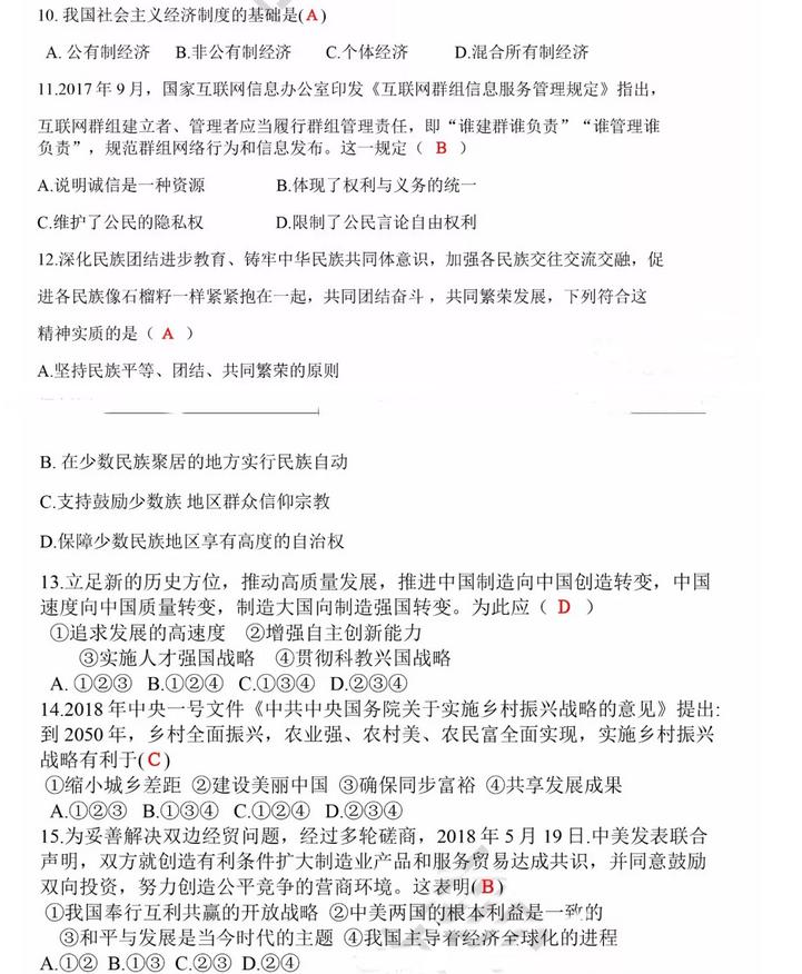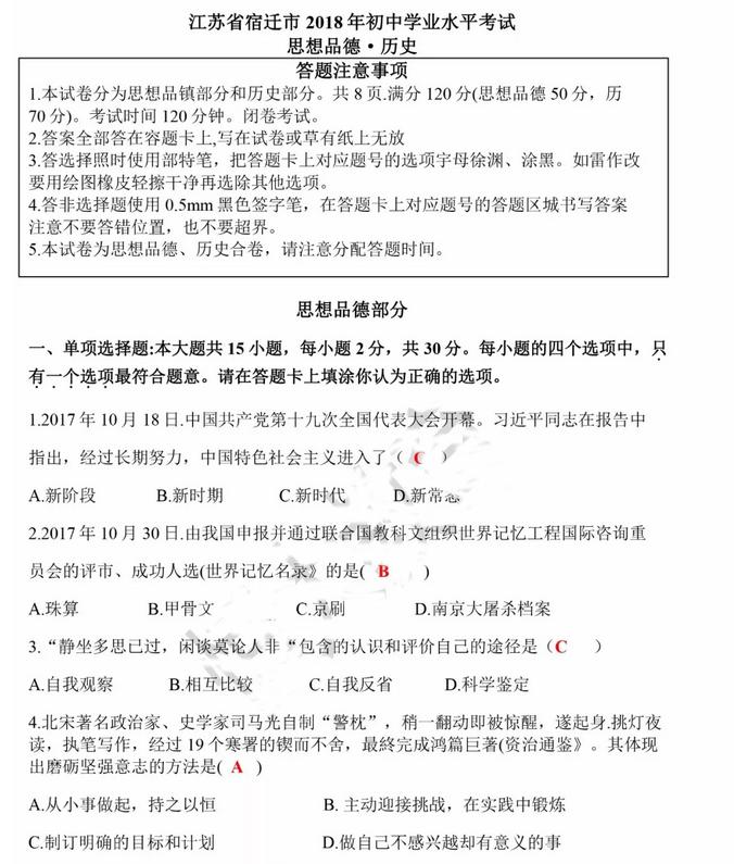 2018年江蘇宿遷中考政治考試已結(jié)束,中考頻道從網(wǎng)絡(luò)上搜集整理了“2018年江蘇宿遷中考政治試卷及答案”,供考生們參考學(xué)習(xí),小編預(yù)祝大家取得優(yōu)異的成績(jī)!