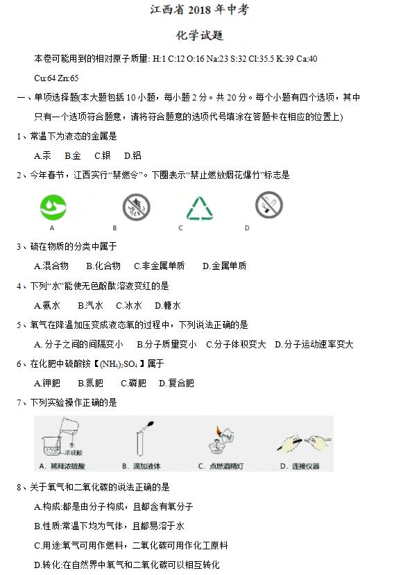 2018年江西上饒中考化學(xué)考試已結(jié)束,中考頻道從網(wǎng)絡(luò)上搜集整理了“2018年江西上饒中考化學(xué)試卷及答案”,供考生們參考學(xué)習(xí),小編預(yù)祝大家取得優(yōu)異的成績!