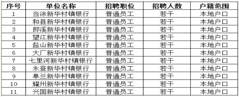 為更好地服務(wù)“三農(nóng)”,支持中小企業(yè)發(fā)展,馬鞍山農(nóng)商銀行作為主發(fā)起行,分別成立北京平谷、天津靜海、廣州番禺、佛山南海、東莞常平、深圳龍華、江門新會(huì)、西安長(zhǎng)安、江西興國(guó)、蘭州七里河、蘭州永登、蘭州皋蘭、銅川耀州、山東博興、滄州鹽山、滄州海興、大廠回族自治縣、安徽當(dāng)涂、安徽郎溪、安徽和縣及望江新華村鎮(zhèn)銀行,為滿足業(yè)務(wù)發(fā)展需要,現(xiàn)向社會(huì)公開招聘英才,熱忱歡迎您的加盟,展示才智,共創(chuàng)未來。