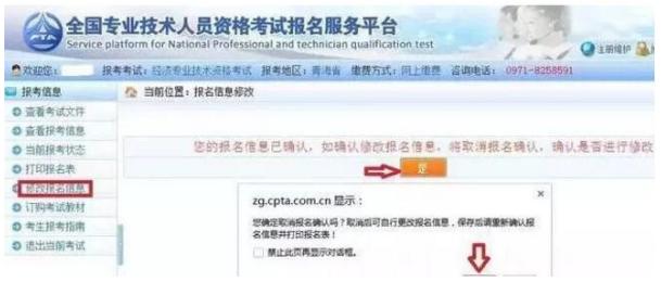 二、在“報(bào)名信息確認(rèn)”環(huán)節(jié)后,資格審核前,考生可自行修改報(bào)名信息,點(diǎn)擊報(bào)名服務(wù)平臺(tái)左側(cè)“修改報(bào)名信息”—“是”—“確定”,修改需要內(nèi)容,保存之后點(diǎn)擊確認(rèn)。