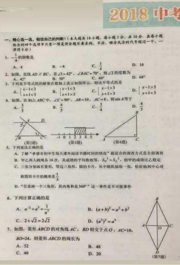 2018年湖北武漢中考數(shù)學(xué)考試已結(jié)束,中考頻道從網(wǎng)絡(luò)上搜集整理了“2018年湖北孝感中考數(shù)學(xué)試題及答案”,供考生們參考學(xué)習,小編預(yù)祝大家取得優(yōu)異的成績!