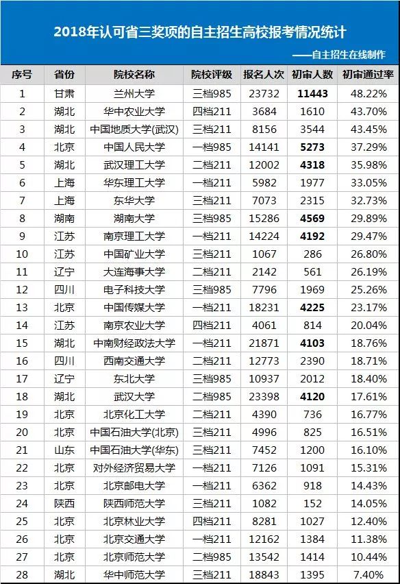 3、部分高校初審人數(shù)多,考試競爭會異常激烈。因各校招生計劃有限,在初審人數(shù)多的情況下,高校主要審核在考試環(huán)節(jié)。如:蘭大、人大、武大等。