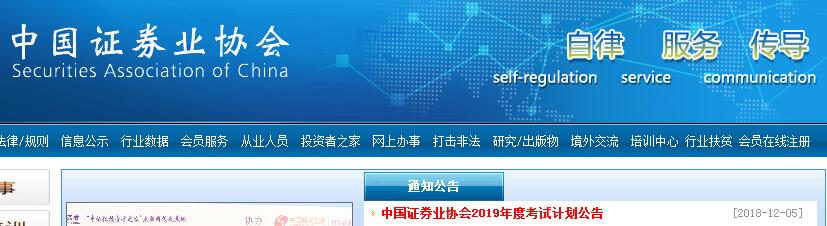 根據(jù)中國證券業(yè)協(xié)會網(wǎng)站發(fā)布的《中國證券業(yè)協(xié)會2019年度考試計劃公告》得知,2019年證券從業(yè)資格考試時間如下希望對大家有幫助,請大家積極備考,爭取一舉拿下證書!