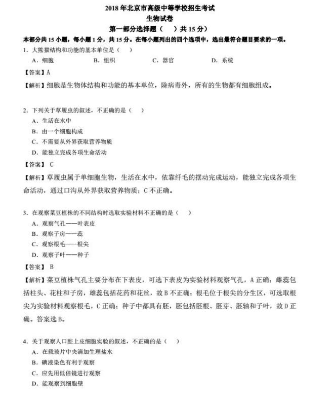2018年北京通州中考生物考試已結(jié)束,中考頻道從網(wǎng)絡(luò)上搜集整理了“2018年北京通州中考生物試題及答案”,供考生們參考學(xué)習(xí),小編預(yù)祝大家取得優(yōu)異的成績(jī)!