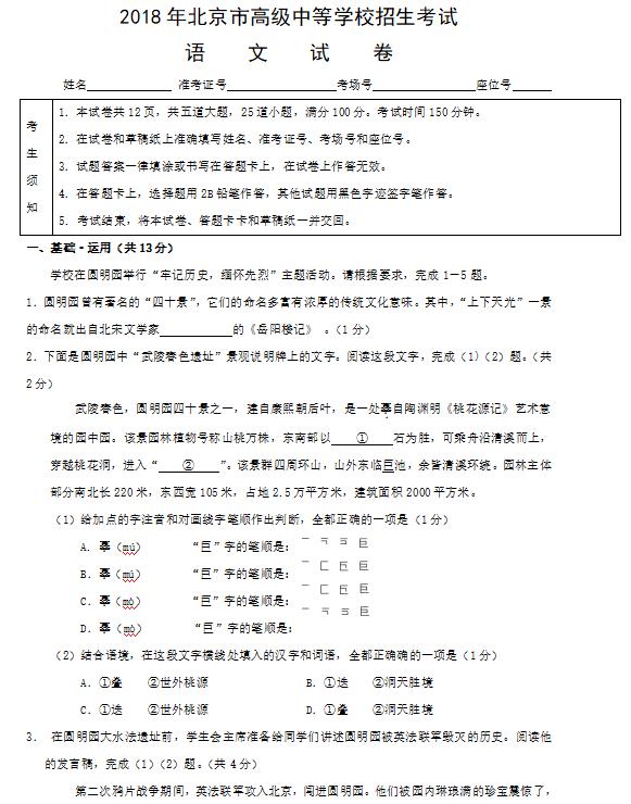 2018年北京密云中考語文考試已結(jié)束,中考頻道從網(wǎng)絡(luò)上搜集整理了“2018年北京密云中考語文試題及答案”,供考生們參考學(xué)習(xí),小編預(yù)祝大家取得優(yōu)異的成績!