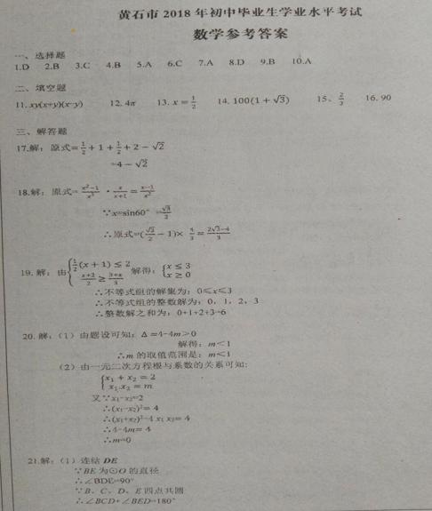 2018年湖北黃石中考數(shù)學(xué)考試已結(jié)束,中考頻道從網(wǎng)絡(luò)上搜集整理了“2018年湖北黃石中考數(shù)學(xué)試題及答案”,供考生們參考學(xué)習(xí),小編預(yù)祝大家取得優(yōu)異的成績(jī)!