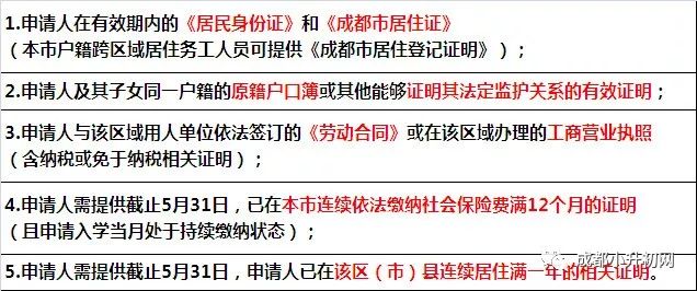 2018年5月2日-31日(工作日),在成都本市居住務(wù)工的非本市戶籍人員以及本市戶籍跨區(qū)域居住務(wù)工人員可在居住地所在教育行政部門指定的登記點(diǎn)辦理隨遷子女的入學(xué)申請(qǐng)。