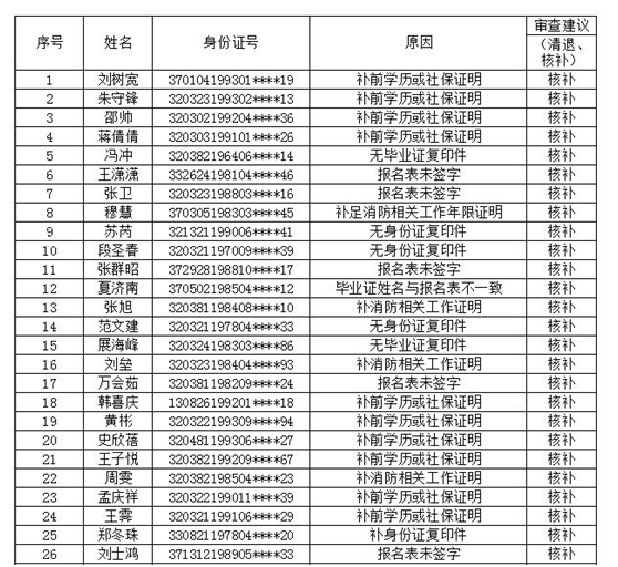 1、上表中審核退回原因?yàn)椤把a(bǔ)專業(yè)年限工作證明”、“工作證明中無(wú)消防相關(guān)年限”等情況的須單位重新開具“某某同志在我單位從事消防安全工作**年”的專業(yè)年限工作證明并加蓋公章,“補(bǔ)前學(xué)歷或社保證明”主要是工作時(shí)間需前后累計(jì)的(主要指成人函授教育),前學(xué)歷須是中專、技工學(xué)校、大專畢業(yè)證書(按前學(xué)歷的畢業(yè)時(shí)間推算工作時(shí)間),或社保繳費(fèi)證明(在社保中心開具并符合報(bào)考年限要求),按推算工作年限不足的一律清退。