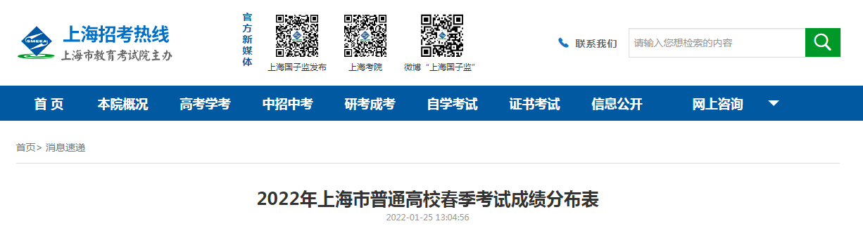 從上海招考熱線了解到,2022年上海市普通高校春季考試成績分布表已發(fā)布,詳細內(nèi)容如下: