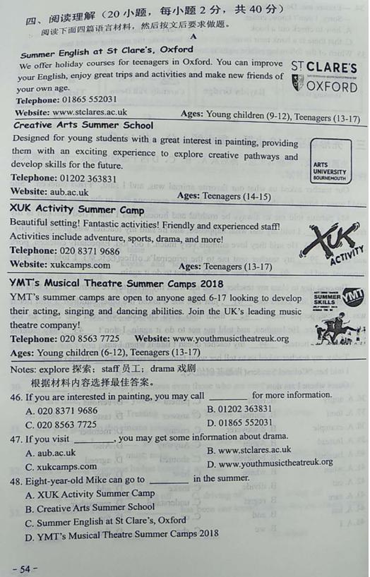 2018年河南三門峽中考英語考試已結(jié)束,中考頻道從網(wǎng)絡(luò)上搜集整理了“2018年河南三門峽中考英語試題及答案”,供考生們參考學(xué)習(xí),小編預(yù)祝大家取得優(yōu)異的成績!