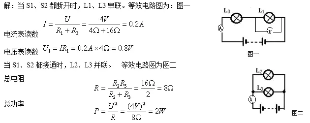 電路中,電源電壓保持4伏,L1的電阻為4歐,L2、L3的電阻均為16歐