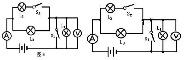 例題分析:在題中的當開關處于閉合或斷開的兩種情況下電路結構發(fā)生了變化,可進行電路的改畫,見圖6。