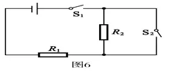 例2 在圖所示的電路中,電源兩端的電壓為6V并保持不變,R1、R2為兩個相同阻值的電阻,開關S1閉合后,下列說法中正確的是?。ˋ)
