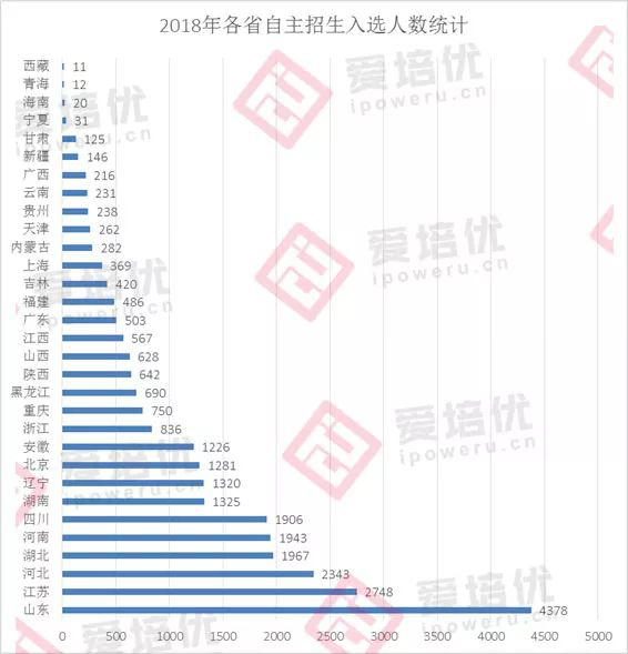 江蘇共有11所具有自主招生資格的院校,平均入選率為16.49%;