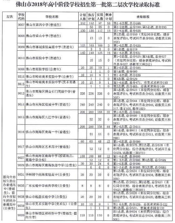 中考頻道從佛山市教育局了解到,2018年廣東佛山中考第一批錄取分?jǐn)?shù)線已公布,具體如下:
