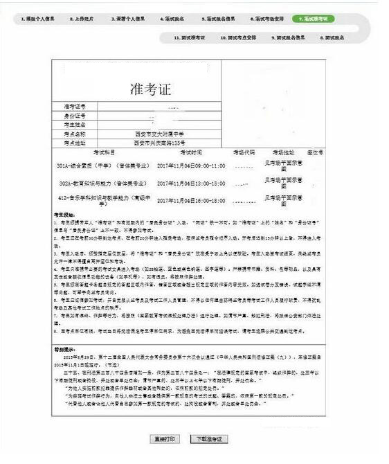 第五步:檢查完畢自己的考場(chǎng)之后,點(diǎn)擊【7.筆試準(zhǔn)考證】仔細(xì)核對(duì)個(gè)人信息,且閱讀考生須知、特別提示。如果身邊有打印機(jī)可點(diǎn)擊最下方【直接打印】。