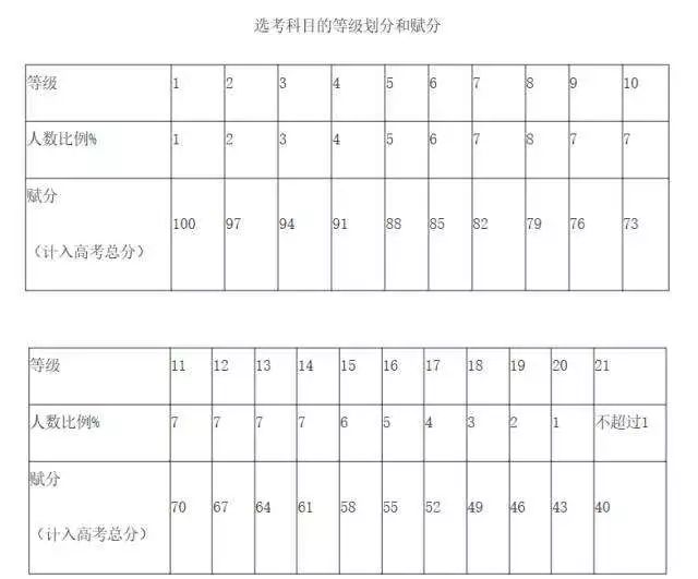 有的(如天津、寧夏)在文件中明確表述等級(jí)性考試按ABCDE 5等21級(jí)賦分,計(jì)入高考總成績(jī)的3科每科滿分100分,高考招生總分滿分750分;