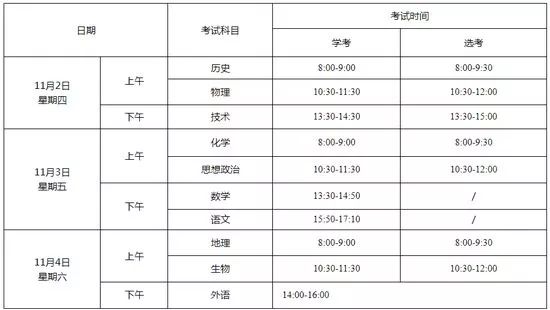 (1)每個(gè)學(xué)科的學(xué)考和選考同時(shí)進(jìn)行,試題不同,選考的考試時(shí)間比學(xué)考多30分鐘。