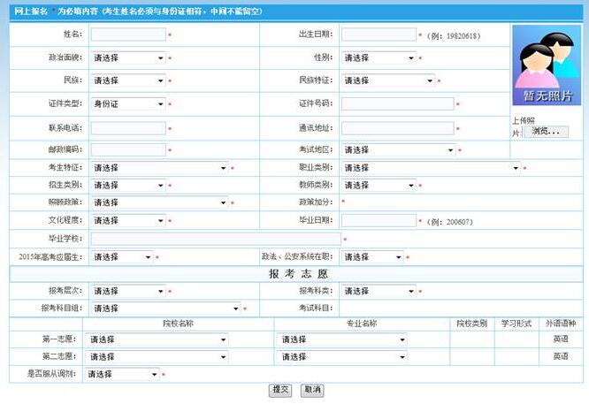 考生信息填報與修改界面如下(樣圖):
