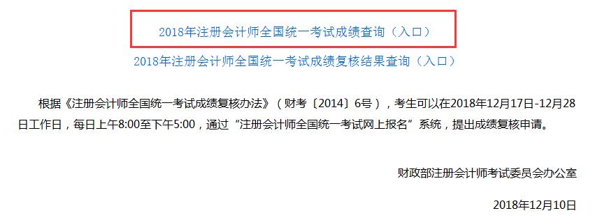 2018年注會(huì)成績(jī)查詢?nèi)肟陂_(kāi)通啦!2018年注冊(cè)會(huì)計(jì)師考試查分入口已于2018年12月10日開(kāi)通。