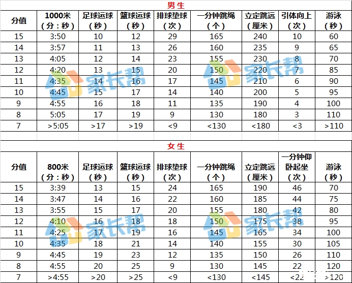 (3)各項滿分15分,考生按三個項目實際得分計入體育考試成績。