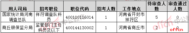 截止到10月31日9時,工作地點在河南的職位所有職位均有人報考,只剩下2個職位無人過審,占全部職位的0.58%。下面是無人過審職位一覽表,專家建議廣大考生多關(guān)注一些較冷職位,避免激烈競爭,結(jié)合自身條件,找到屬于自己的職位。