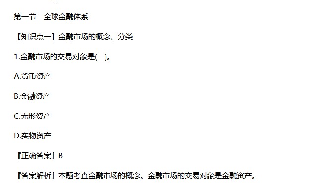 『答案解析』本題考查金融市場(chǎng)的分類。金融市場(chǎng)按照交易標(biāo)的物分類,可分為貨幣市場(chǎng)、外匯市場(chǎng)、資本市場(chǎng)、保險(xiǎn)市場(chǎng)等。