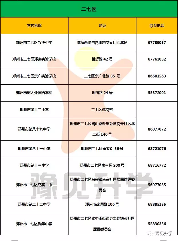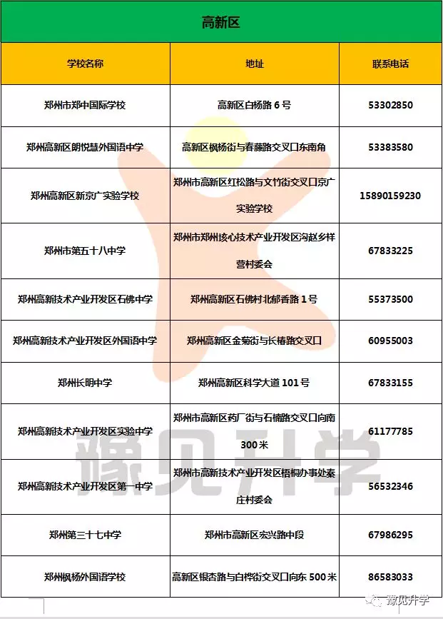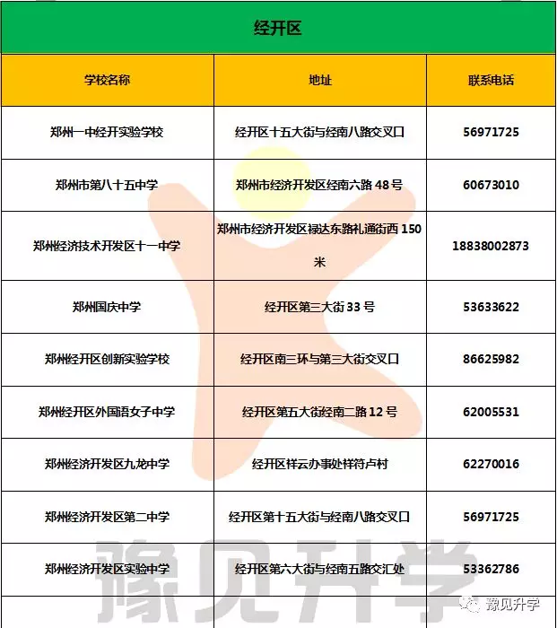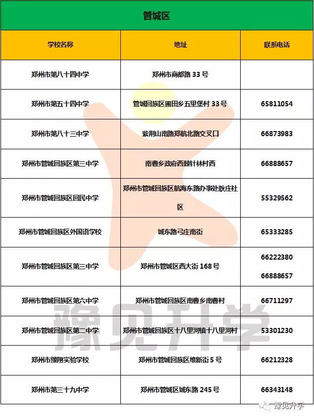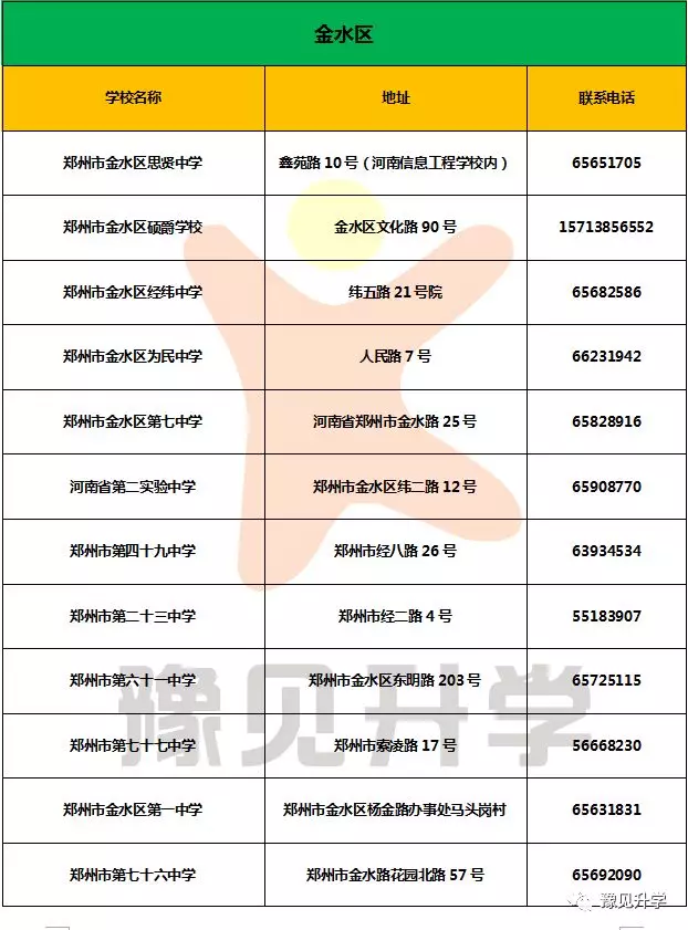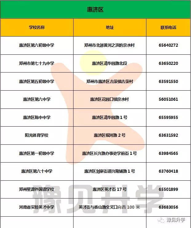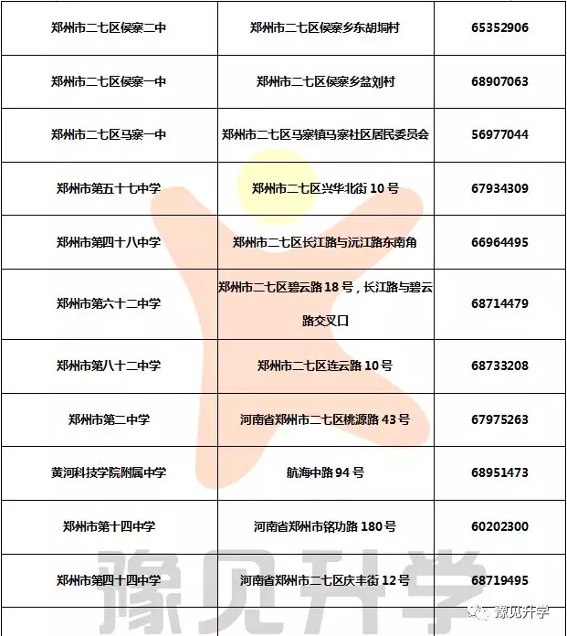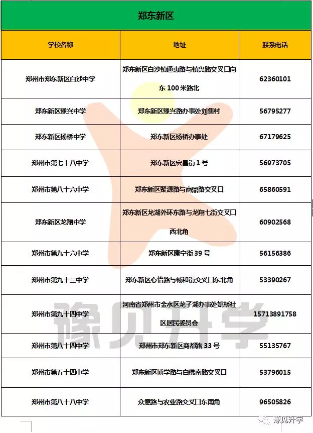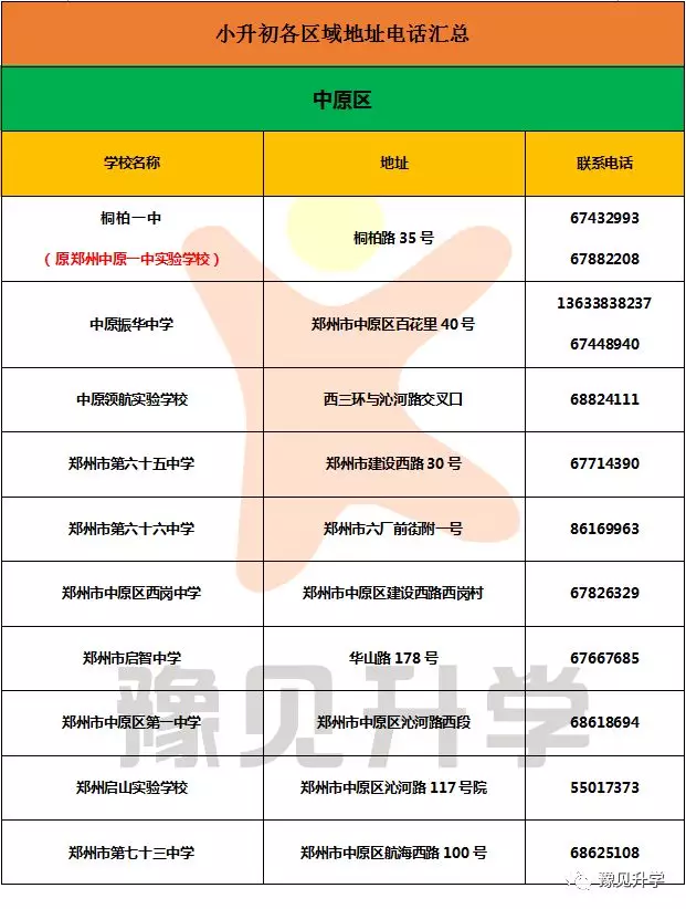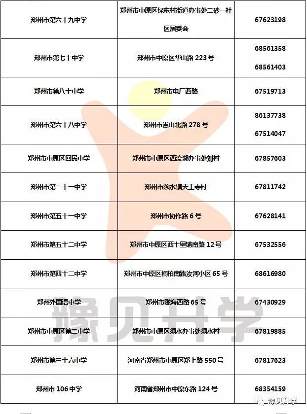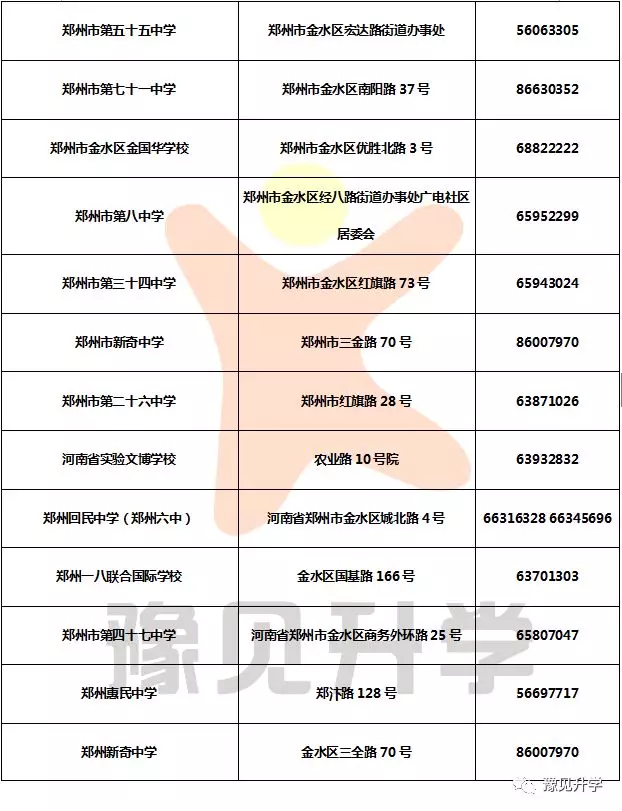 2018年各區(qū)域的初中地址及聯(lián)系方式匯總