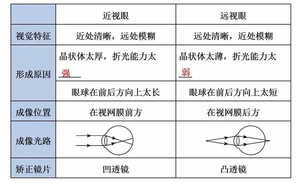 (3)度數(shù):遠視鏡的度數(shù)為正數(shù),近視眼的度數(shù)為負數(shù)。