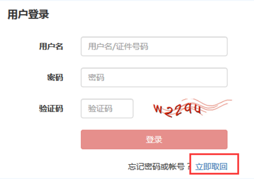 如果忘記密碼,可以在登錄框點(diǎn)擊【立即取回】。(注:以下為預(yù)約式考試入口為例)