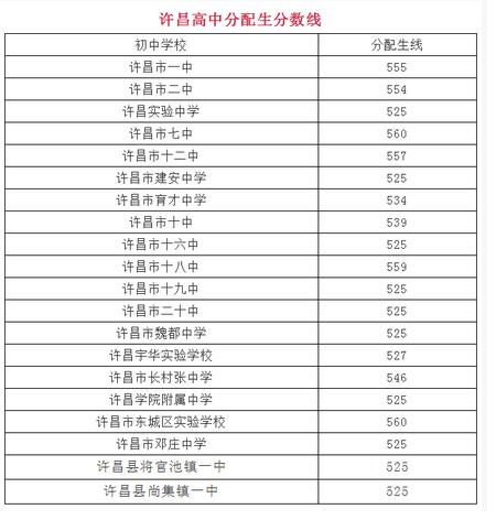 中考頻道從許昌市教育局了解到,2018年河南許昌中考錄取分?jǐn)?shù)線已公布,具體如下: