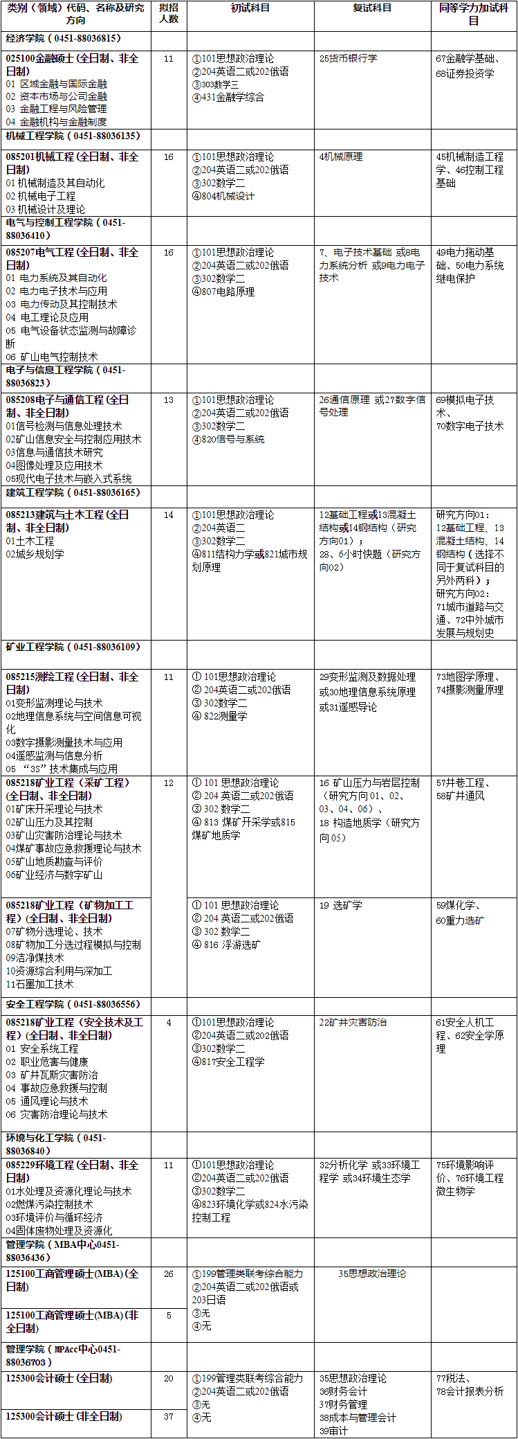 專業(yè)學(xué)位碩士研究生招生目錄