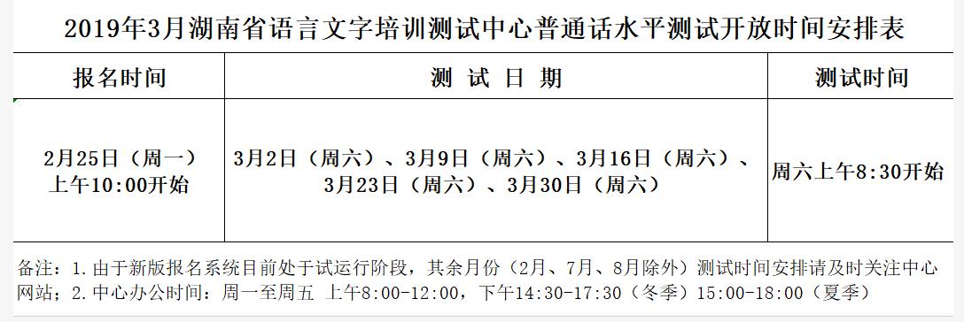 從湖南省語言文字培訓測試中心獲悉,湖南省語言文字培訓測試中心2019年3月普通話報名時間已公布,2月25日起報名,具體詳情如下: