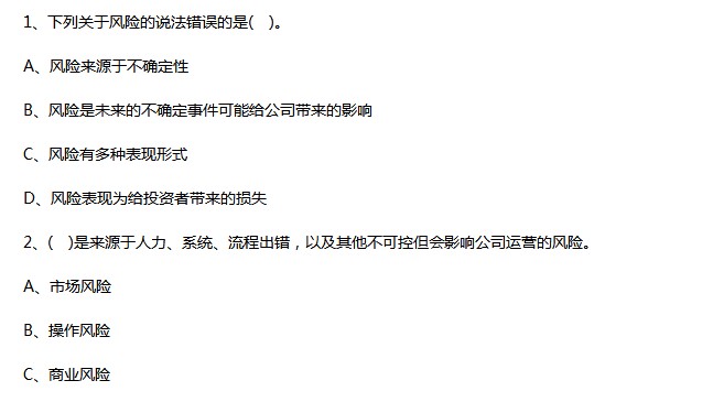 【答案解析】 本題考查操作風(fēng)險(xiǎn)的概念。操作風(fēng)險(xiǎn)是來(lái)源于人力、系統(tǒng)、流程出錯(cuò),以及其他不可控但會(huì)影響公司運(yùn)營(yíng)的風(fēng)險(xiǎn)