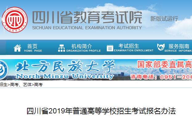 高考頻道從四川省教育考試院了解到,2019年四川普通高等學(xué)校招生考試報名辦法已公布,具體如下: